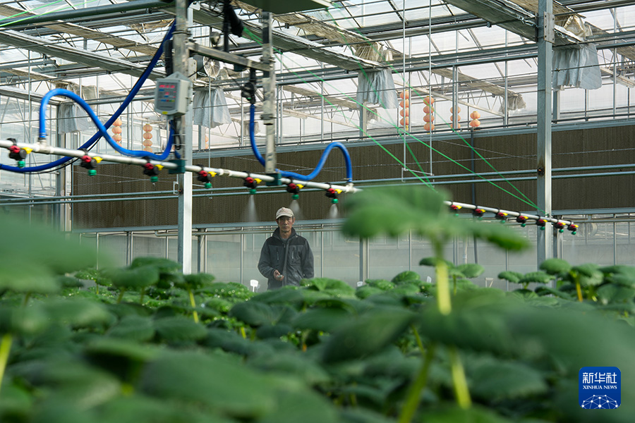 11月21日,工作人员在青海省西宁市湟中区一处蔬菜大棚内工作。新华社记者 杜笑微 摄