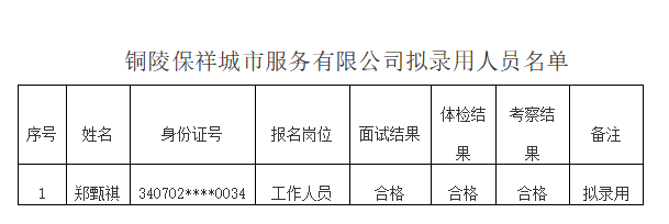 附件:銅陵保祥城市服務(wù)有限公司擬錄用人員名單
